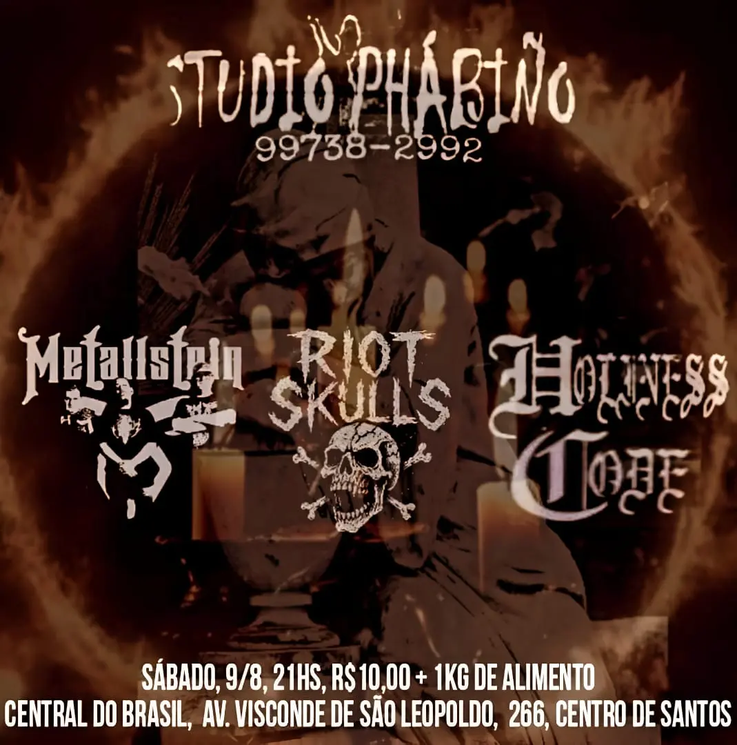 O evento será organizado pelo Studio Phábino e terá como atrações as bandas Holiness Code e Riot Skulls, garantindo uma noite recheada de peso e intensidade para os amantes do gênero.