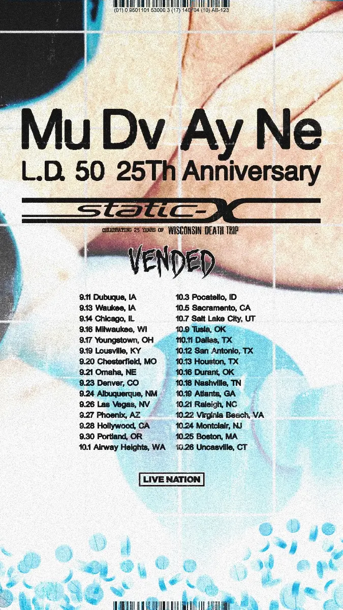 A Mudvayne inicia hoje, 11 de setembro, sua turnê de comemoração de 25 anos do álbum L.D. 50, acompanhada por Static-X e abertura da Vended. O álbum de estreia, lançado em agosto de 2000, alcançou certificação Gold e é considerado clássico do metal dos anos 2000 por revistas como Revolver e Metal Hammer.